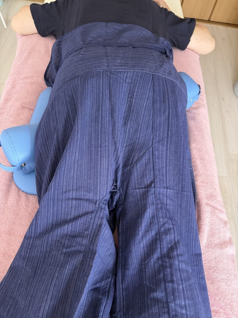 こんなふうにブロックを入れて、骨盤の調整をしています。